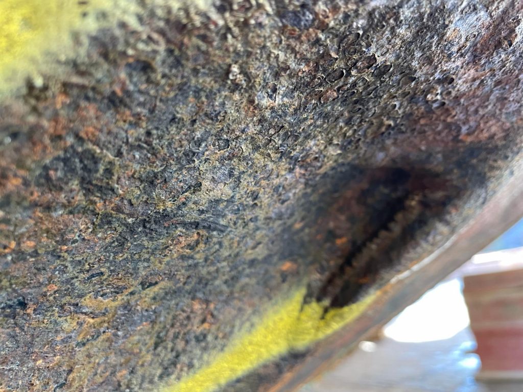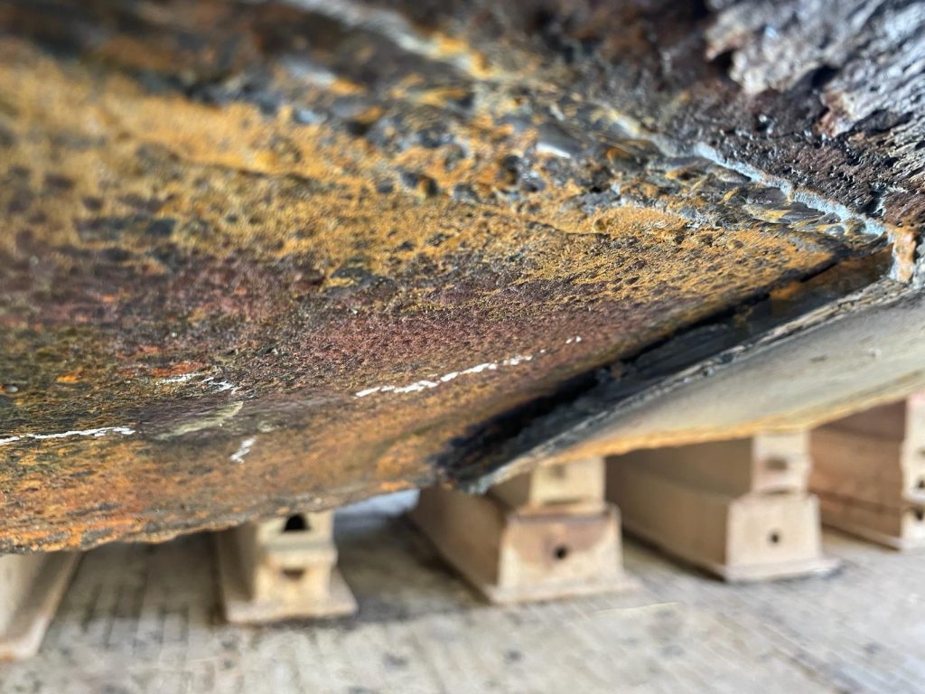 Whilst it seems to be a relatively benign subject, the images above are evidence of what was lurking behind the wear plates of a vessel we recently attended on behalf of owners. It is well documented that the lack of knowledge regarding the parent metal or doubler plate condition is of significant concern, with the potential for sudden and catastrophic failure of the doubler and/or shell plating in way, with many vessel’s having succumbed to the sea as a result of sudden failure, such as the NTSB reported mfv Grace Marie on 8 July 2022, to name just one.